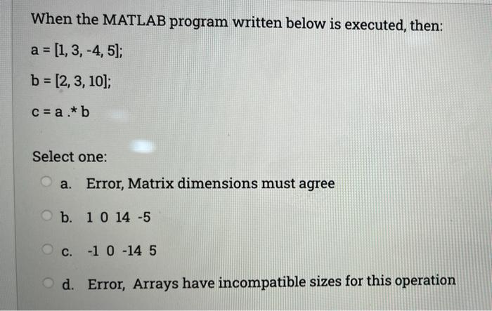 Solved When The Matlab Program Written Below Is Executed Chegg Com